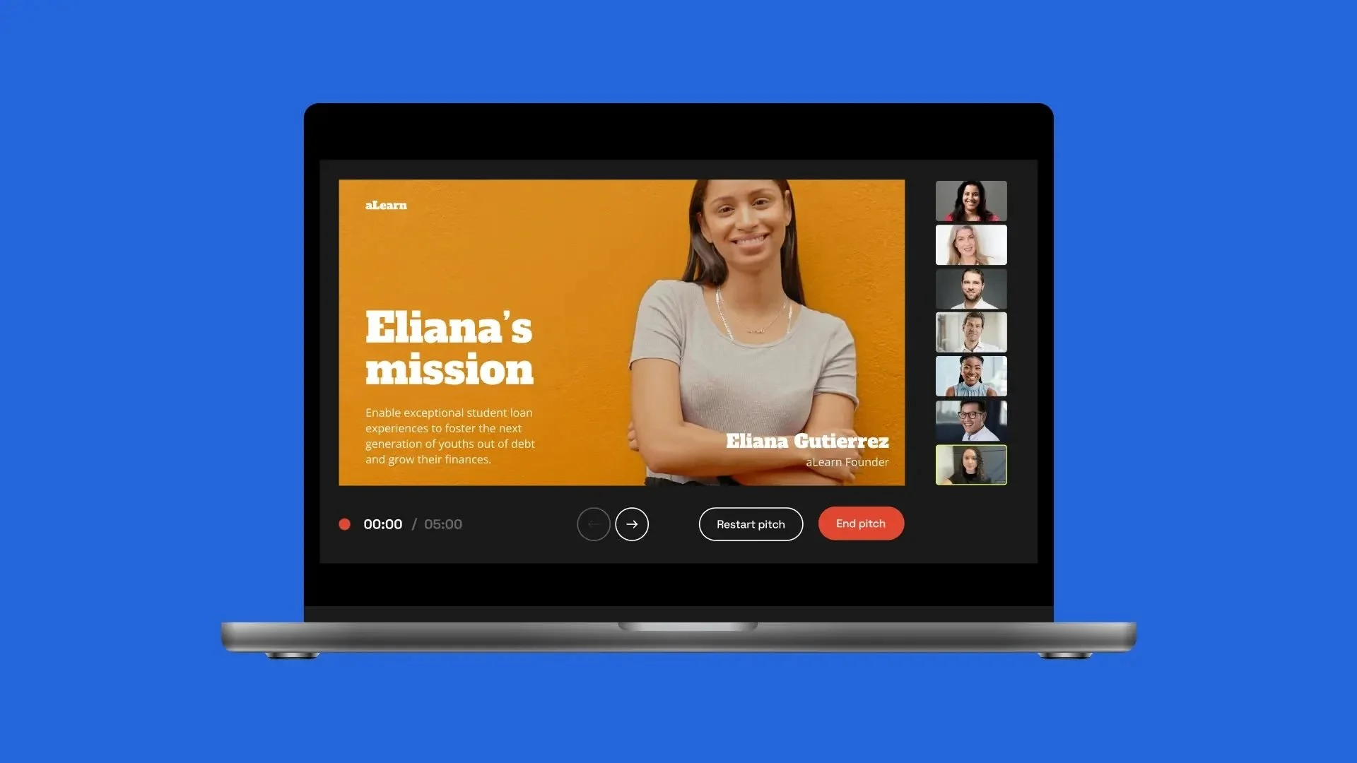 Within the experience is a simulated live pitch mode and virtual investors.